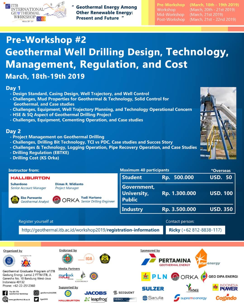Here we go, 8th IIGW 2019. Pre-Workshop #2: Geothermal Well Drilling Design, Technology, Management, Regulation, and Cost, by representatives from Halliburton, ESDM, and KS Orka