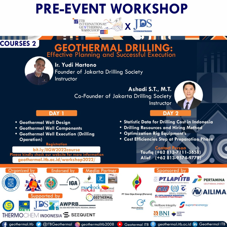 Call for Geothermal Enthusiast! proudly present, The 11th IIGW 2022 Pre-Event Course #2: Geothermal Drilling – Effective Planning and Successful Execution