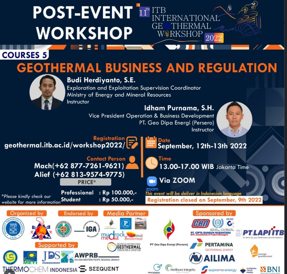Call for Geothermal Enthusiast! proudly present, The 11th IIGW 2022 Post-Event Course #5: Geothermal Business and Regulation